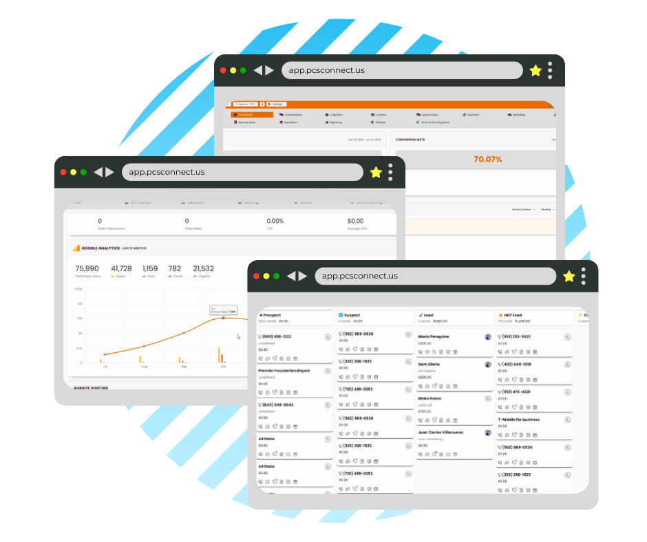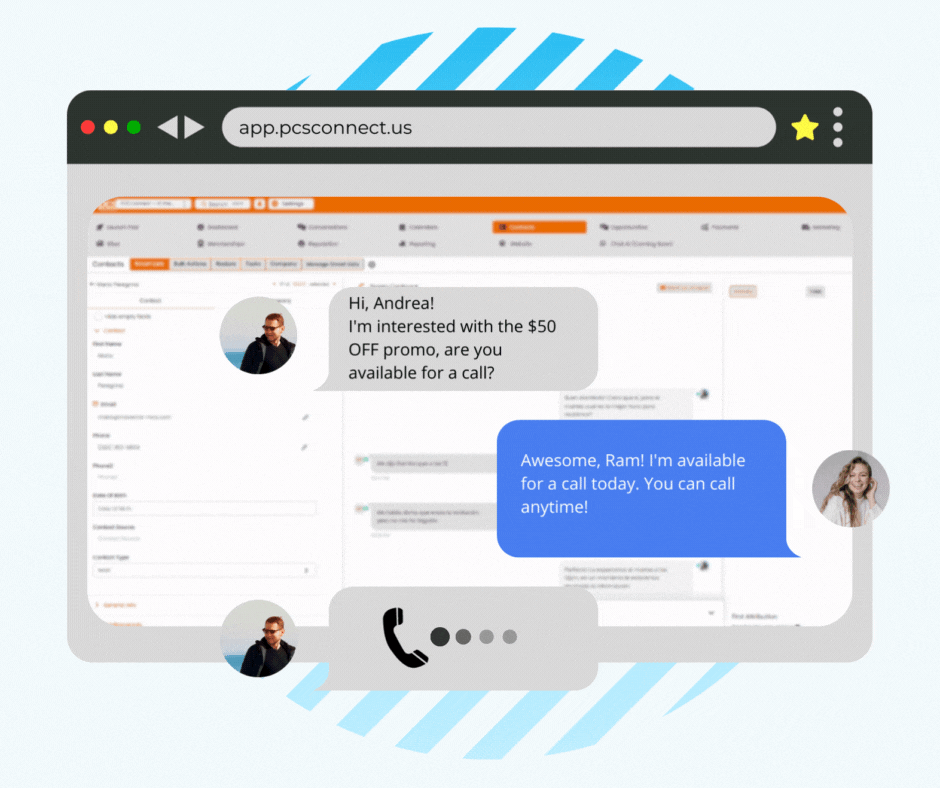 MarketingHub allows you to connect with your leads through Phone Connect, Voicemail Drops, SMS/MMS, emails, and even Facebook Messenger.