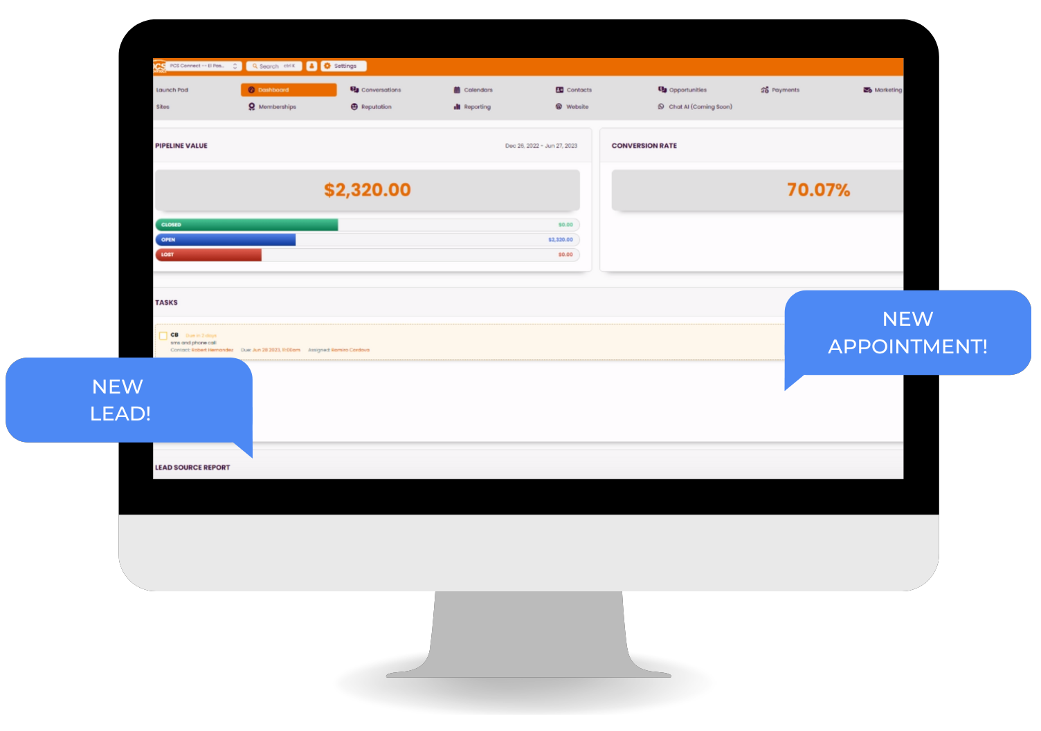 We integrate directly with Stripe so you can collect payments on websites, funnels, and even when someone books an appointment.